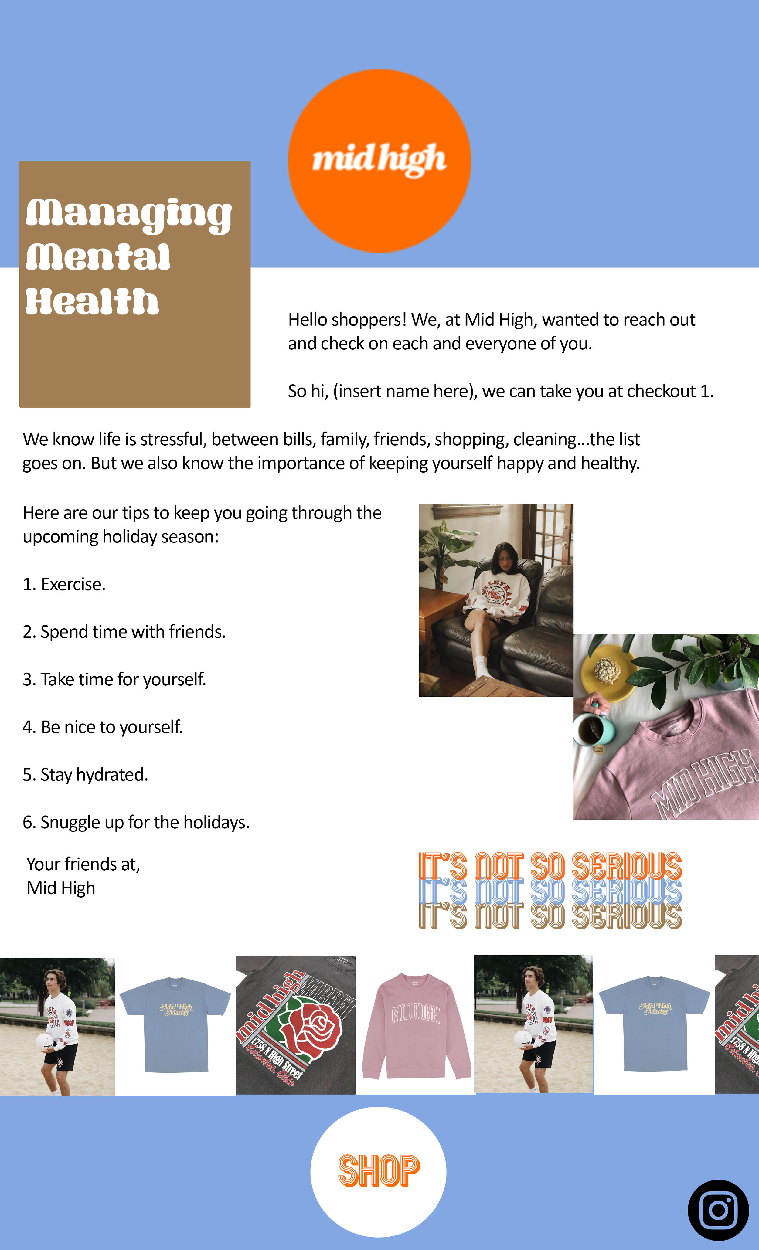 Working with Mid High Market, our team focused on reconnecting with their brand aesthetic that wasn’t being translated to the customer. My piece of the project was designing a stamp/sticker and an email template with some sample writing.